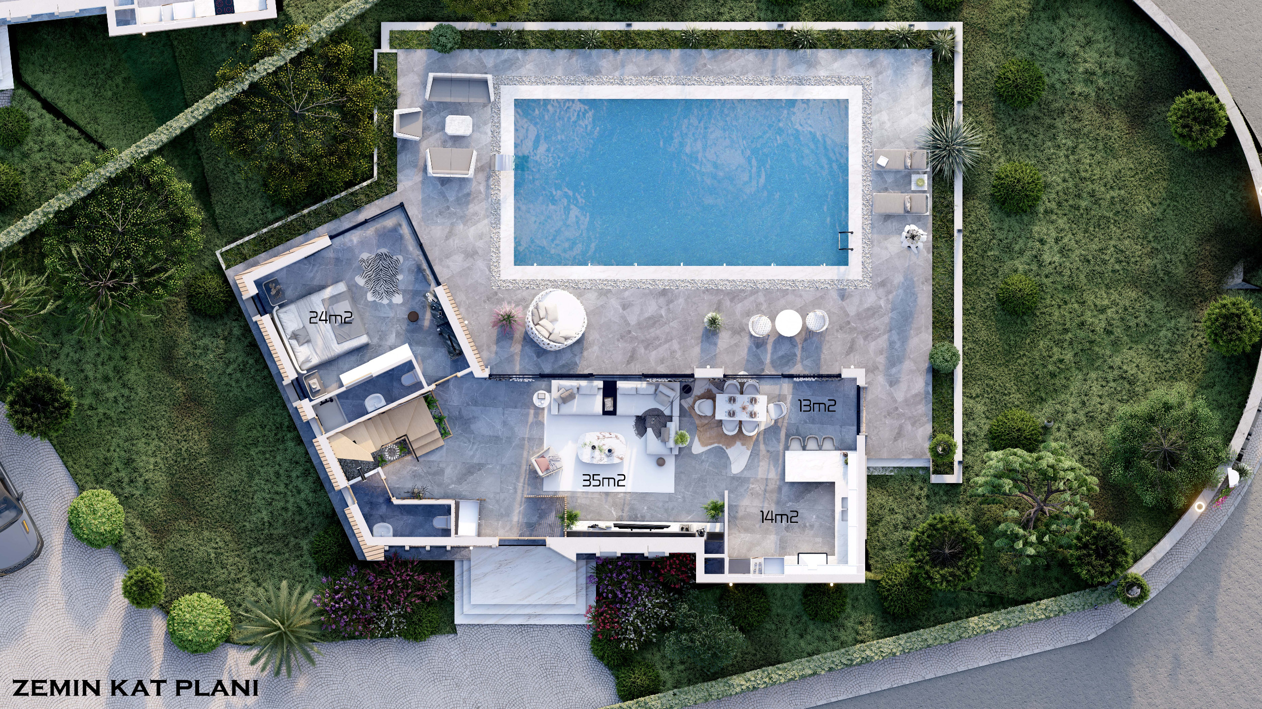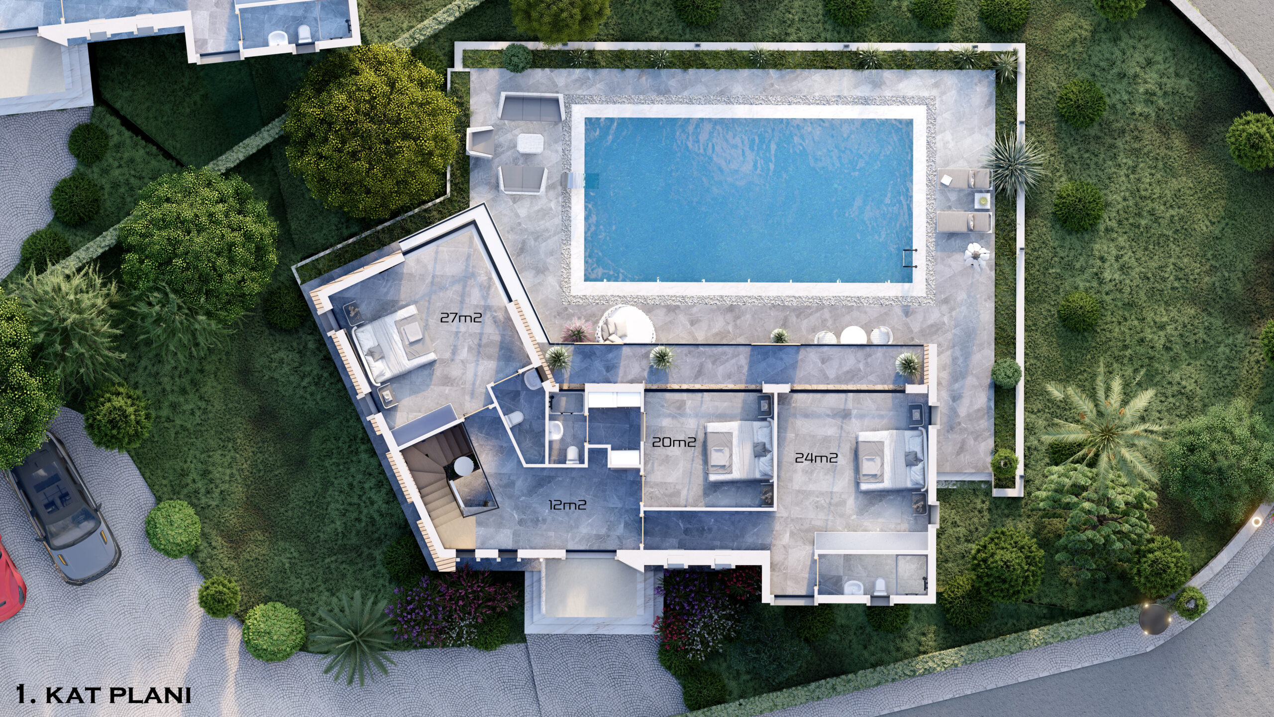 - 3 Adet 500m2 5+2+1+1 Villa (Spor Salonu, Hamam ve Saunalı)