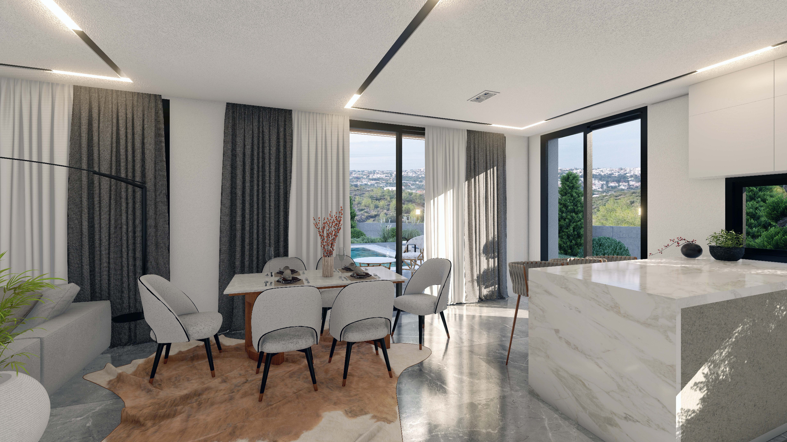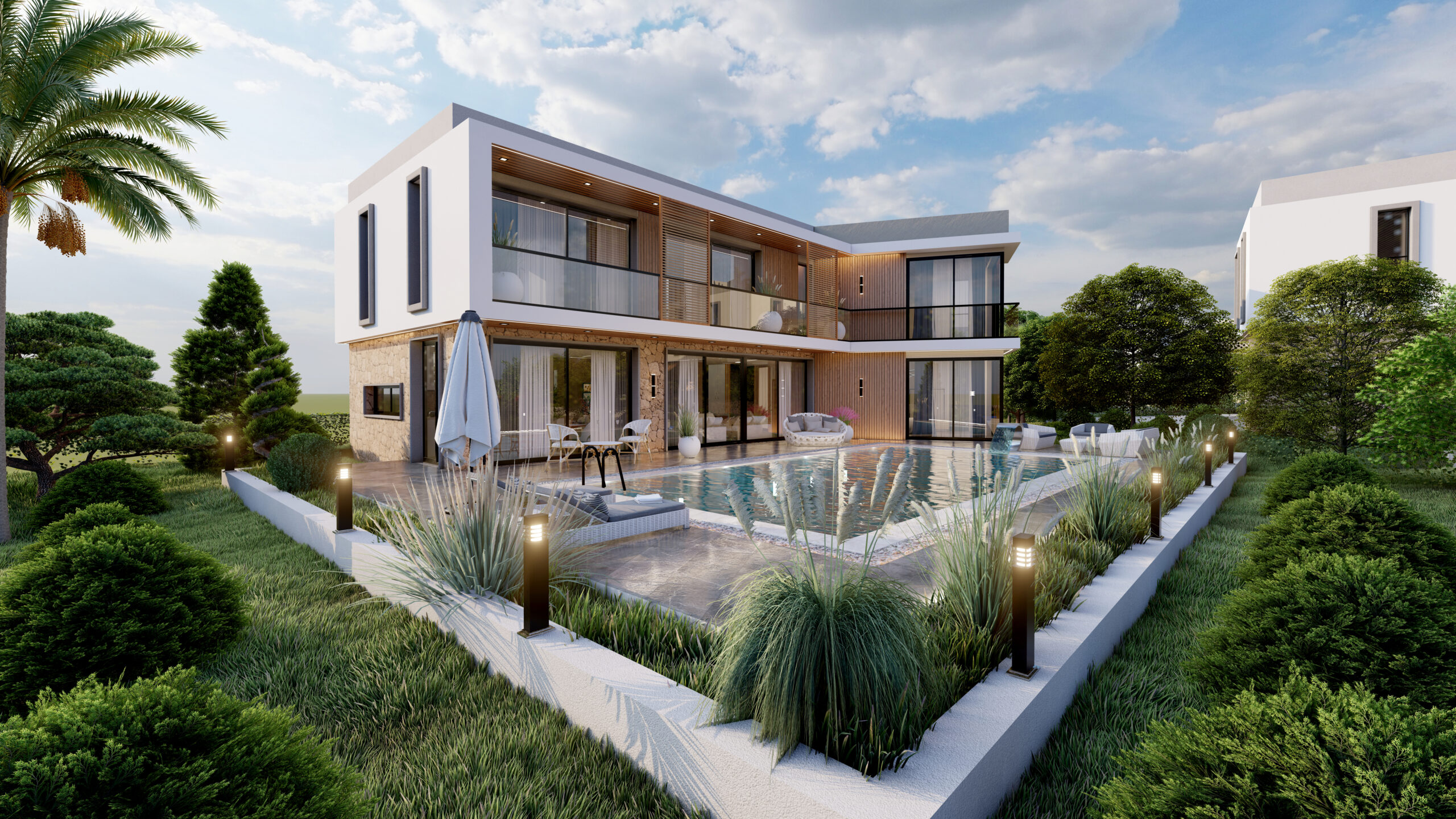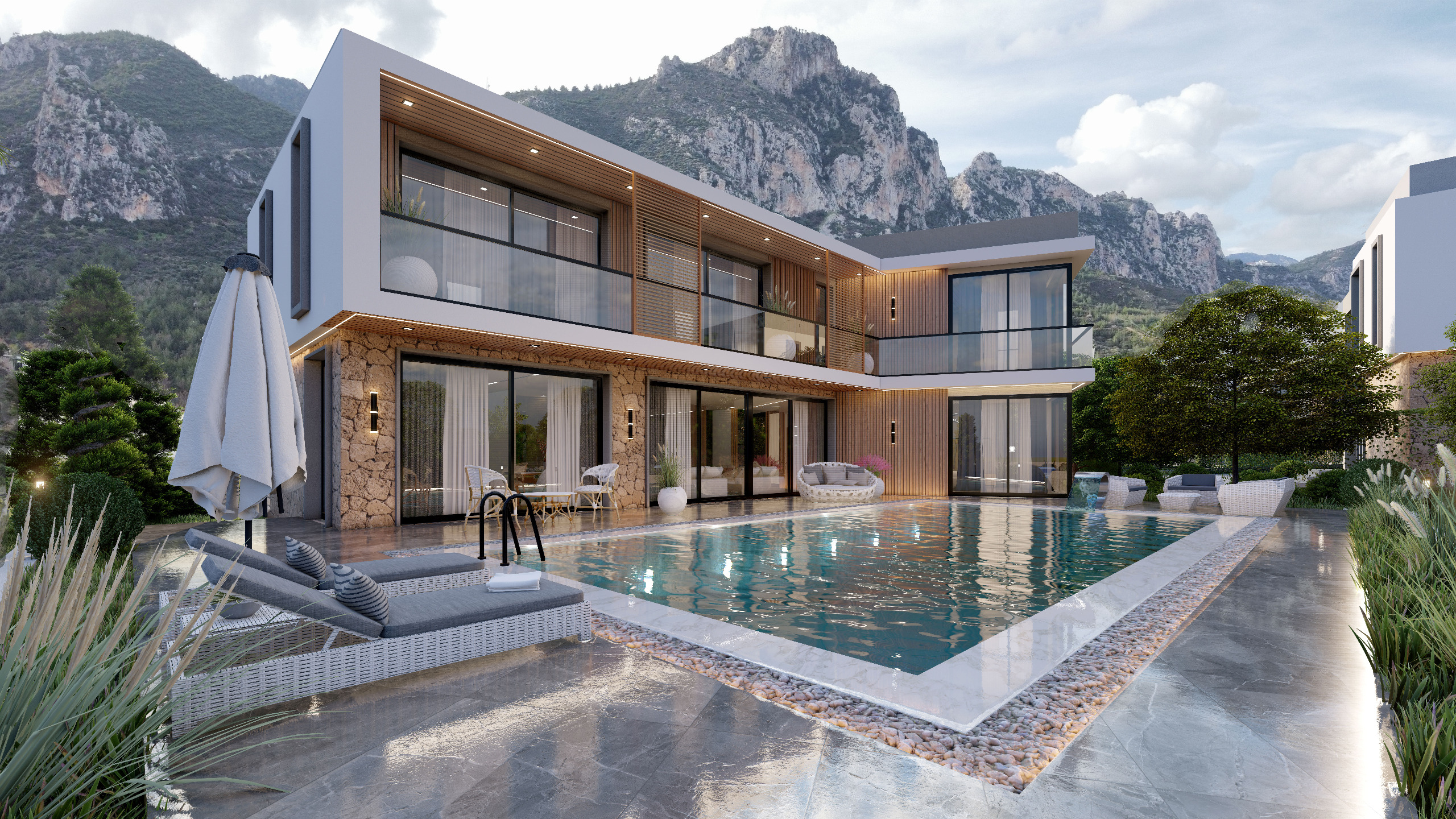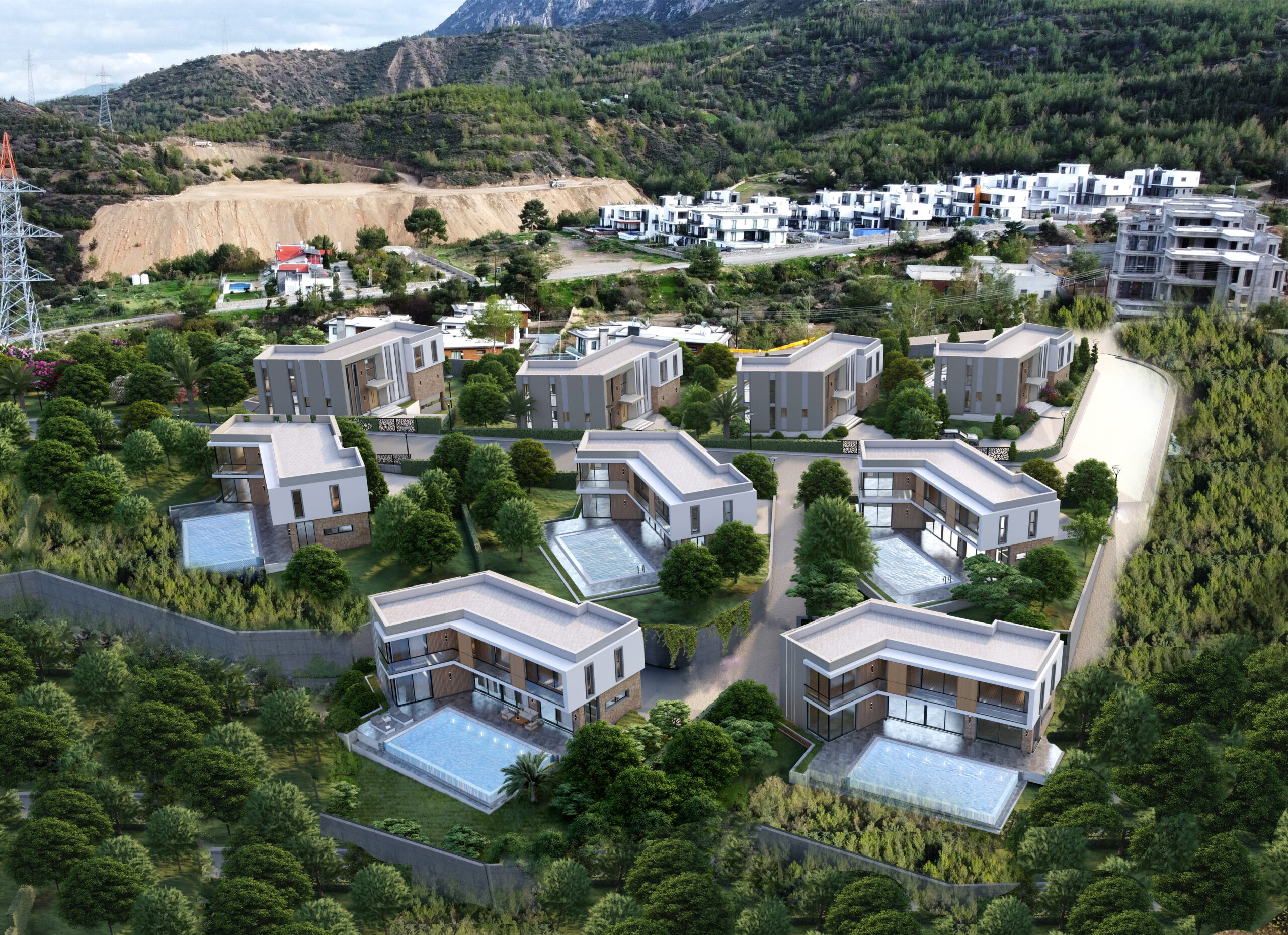 Her bir villa, Kıbrıs’ın doğasına uygun, modern mimarisi, lüks detayları ve yüksek kaliteli malzemelerle tasarlanmış geniş iç mekanlarıyla kendine özgü bir karakter taşıyor.